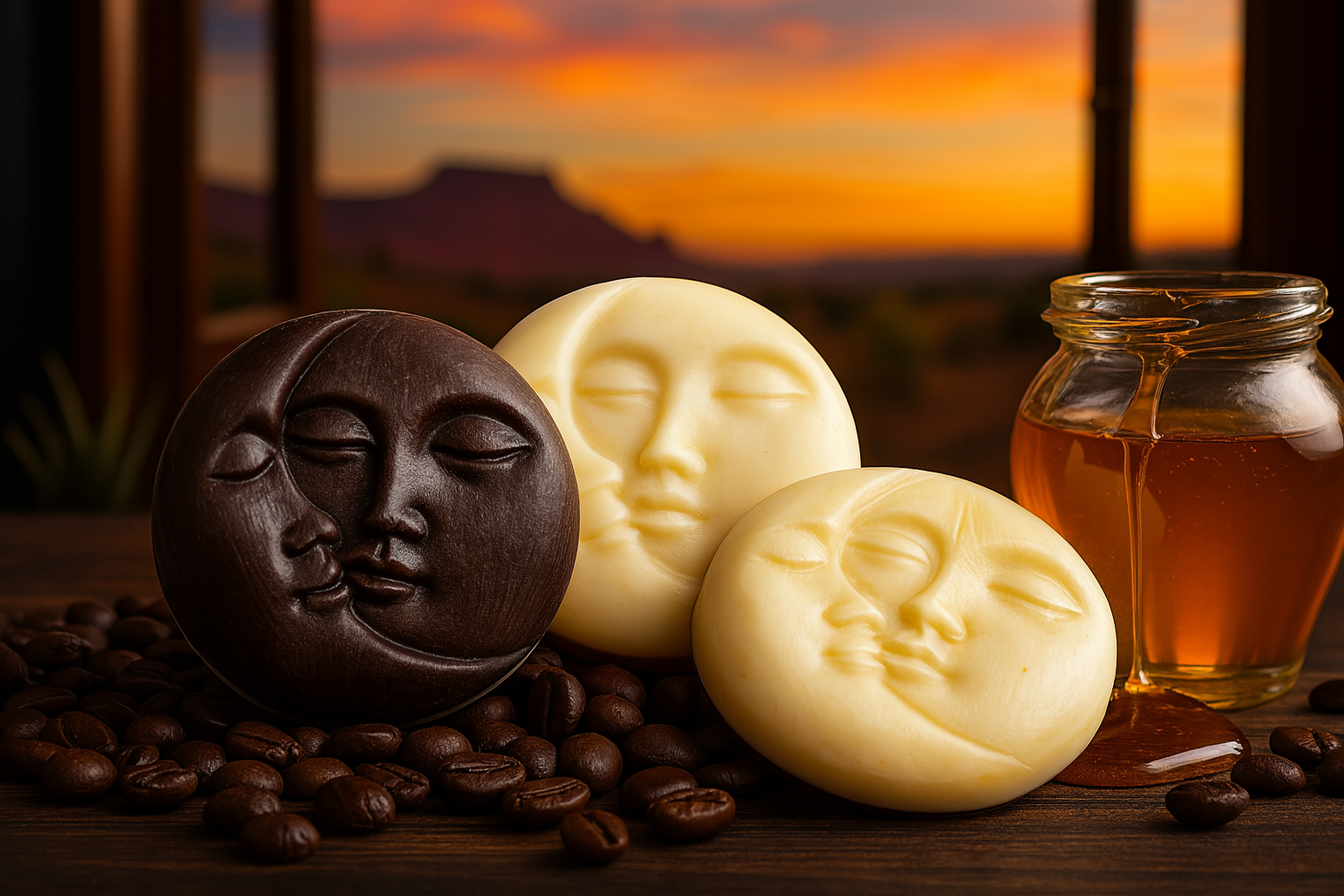 Jabón bifásico en formato circular que une dos beneficios esenciales para el cuidado de la piel: exfoliación con café molido y nutrición con miel natural.