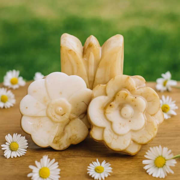 Jabón con extracto de manzanilla, ideal para pieles sensibles, delicadas o con tendencia a irritaciones.