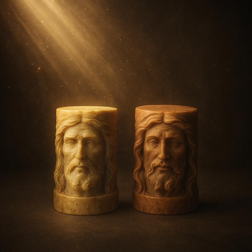 Jabón decorativo en forma cilíndrica, cuidadosamente moldeado con la figura del rostro de Cristo en relieve. Es una pieza que combina estética, simbolismo y funcionalidad. Ideal para ofrecer como presente significativo o para decorar espacios espirituales como altares, baños o rincones especiales del hogar.