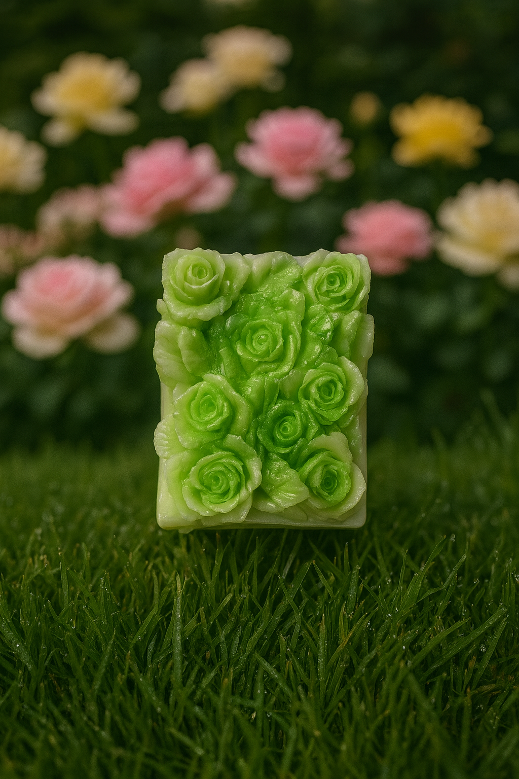 Su forma rectangular y diseño lleno de detalles convierten este jabón en una experiencia visual y sensorial. Ideal para quienes buscan un producto natural que no solo cuide la piel, sino que también decore con sutileza.